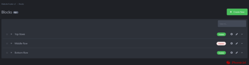 Add as many rows and blocks to the footer as you like. Text, HTML, links and Page blocks.