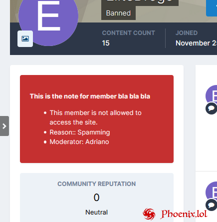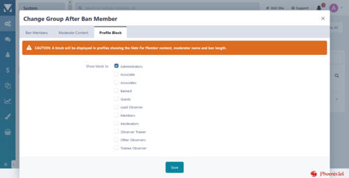 The block will display a note for the member on the user's profile (you can choose which groups will view the block)