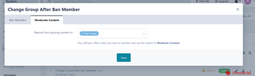 This plugin will give an admin the ability to select a group to move a member when a moderator bans that member via the Warn system . This will also add the ability to prevent SUSPENDED members from starting or replying to threads in certain forums selected in the Admin CP (plugin settings).