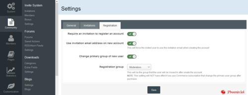 This application will allow your community to use an invitation system for new registrations. You can make it mandatory (or not, depending on your configuration). In this case, an invitation code will be required to register a new account in your community.
