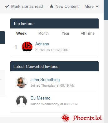 2 widgets: Top Inviters (per week, month, year, and general) and Latest Converted Invitees, which are invitations converted to membership.
