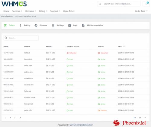 All you need to do is configure the main product in WHMCS, then generate your own domain registrar integration module to be installed by your resellers straight within their systems. Afterwards, Domains Reseller For WHMCS will let you fix different TLDs pricing rates for each reseller group separately, handle credits and refund policy, provide documentation, as well as monitor API logs and income statistics. You will easily grow your reseller base with new members through actions performed in bulk as well as by automatically converting your clients once they order a previously specified product. At the same time, your resellers will be empowered to quickly preview orders placed by acquired clients along with other key details organized neatly in the Reseller Area.