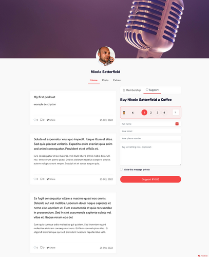 - Customizable donation (support) type settings example: (coffee, tea, pizza).