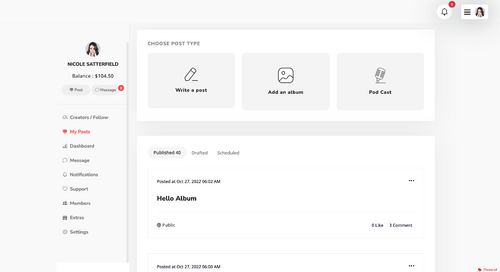 - Different types of posts (Custom Post, Album Post, Podcast Post).
