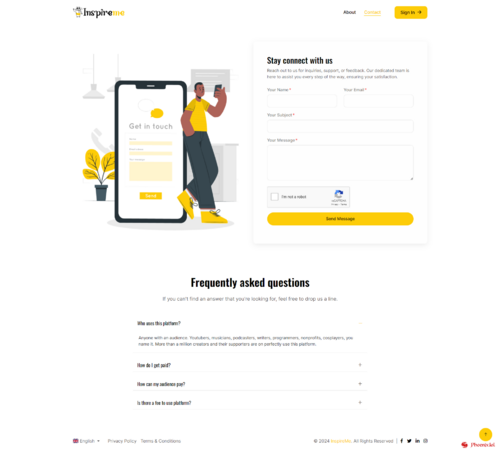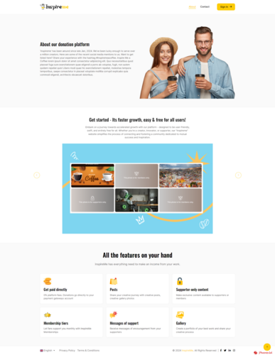 InspireMe is a smart solution for rapidly building an inspiring creative work platform. With InspireMe, coding becomes a thing of the past as you effortlessly create a custom inspiring creative work platform in record time. With its user-friendly interface and personalized recommendations, InspireMe makes it easy to overcome creative blocks, foster collaboration, and transform ideas into impactful results. Elevate your creative work to new heights with InspireMe. Built with the latest PHP Laravel technology, InspireMe ensures reliability, security, and scalability, providing users with a seamless and intuitive experience from start to finish.