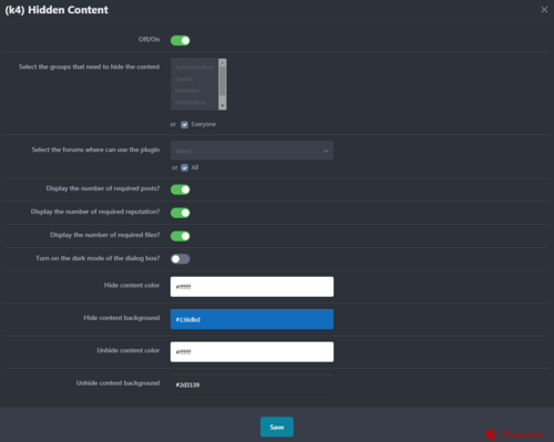 - Выбрать форумы, в которых нужно скрывать контент. (по умолчанию: скрывается для всех)