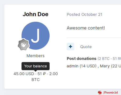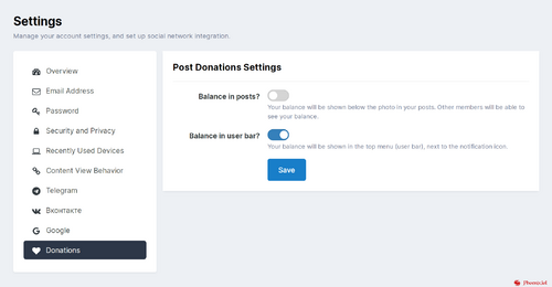 - Вы можете отображать баланс в сообщениях и/или на панели пользователя.