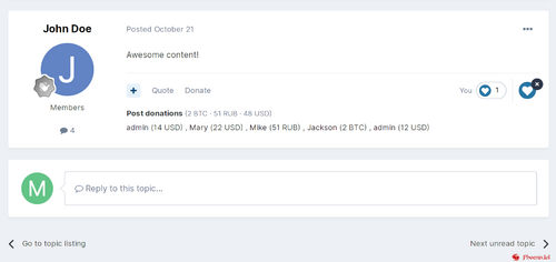 Приложение позволит вашим пользователям делать пожертвования на сообщения с указанием произвольной суммы и причины пожертвования.