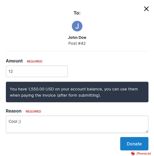 Вы можете указать сумму комиссии, которая будет взиматься. Вы можете сделать пожертвование в любой валюте и любых платежных шлюзах, которые существуют и настроены в приложении Commerce.