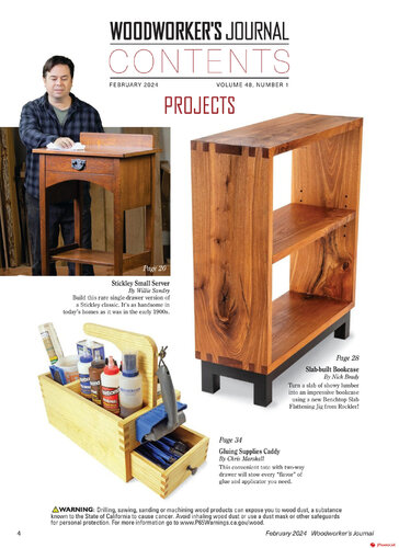Woodworker's Journal — a magazine on carpentry presents new ideas for creativity for all woodworkers, reviews of woodworking machinery and equipment for the workshop, projects for the manufacture of various furniture, crafts, garden gazebos and other small architectural structures from wood, which are provided with step-by-step instructions, photographs and drawings that practically do not require knowledge of English.