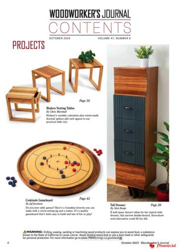 Woodworker's Journal — a magazine on carpentry presents new ideas for creativity for all woodworkers, reviews of woodworking equipment and workshop equipment, projects for making various furniture, crafts, garden gazebos and other small architectural structures from wood, which are provided with step-by-step instructions, photographs and drawings that practically do not require knowledge of English