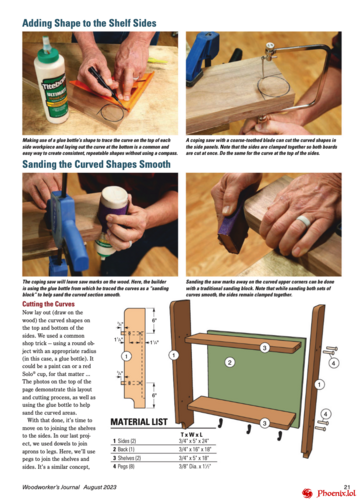 Woodworker's Journal — a magazine on carpentry presents new ideas for creativity for all woodworkers, reviews of woodworking equipment and workshop equipment, projects for making various furniture, crafts, garden gazebos and other small architectural structures from wood, which are provided with step-by-step instructions, photographs and drawings that practically do not require knowledge of English