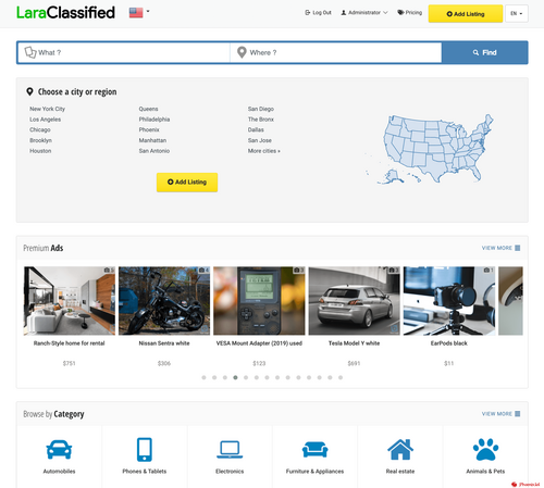 LaraClassifier is the most powerful Classified Ads Web Application in the market. An Open Source and modulable classified app having a fully responsive design. It is packed with lots of features.
