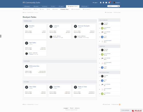 Blackjack is a members shop add-on that allows your members to gamble their hard-earned points playing Blackjack ( 21 ), Create unlimited tables, and set different min & max wagers on each one, you can even allow your members to chat while playing using the tables chat box.