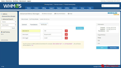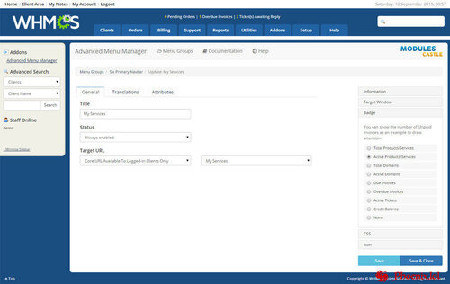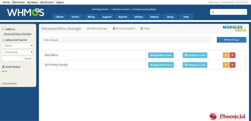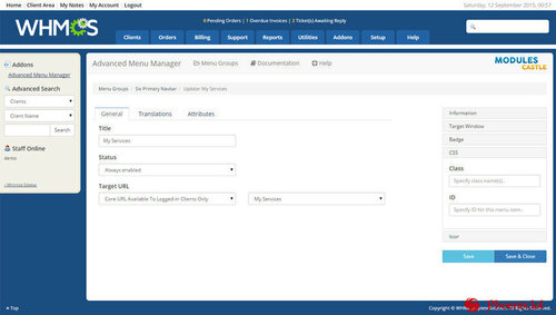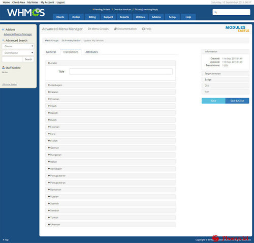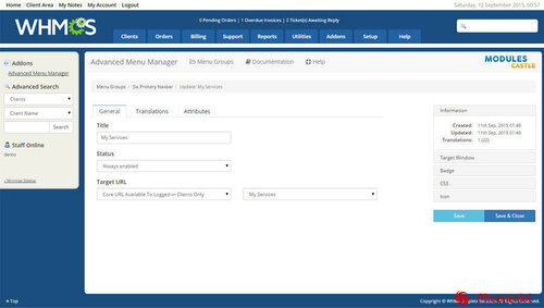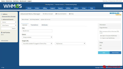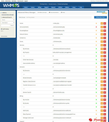 It was hard before to manage WHMCS menu, for example if you want to add new menu item, change it’s place or make it hidden or shown in certain condition, or even to translate the title.