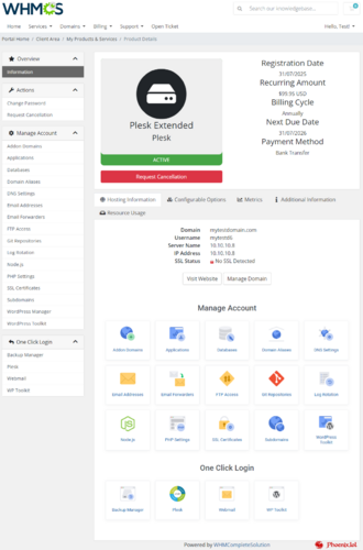 Help your customers feel the thrill of a simple and intuitive, yet supremely efficient dealing with their accounts. Order Plesk Extended For WHMCS and enter a completely new fashion of providing web hosting services.