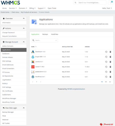 With this quality module, your customers will be allowed to remotely handle their FTP accounts, backups, databases, mailboxes, spam filters, DNS settings, and plenty of other key aspects. The bulk of their chores will be streamlined to the max thanks to easy access to mass actions. After selecting from among Softaculous, Installatron and Plesk Application Installer to perform the installation of all favorite applications, your clients will gain the option to create and restore their backups as well. Depending on your preference, you can personally select the applications ready for immediate use after the account creation or, alternatively, let clients have their pick during the ordering process.