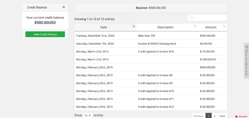 Credit History for WHMCS