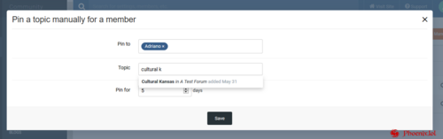 - Пользователь может запрашивать закрепление только своих тем или любых.