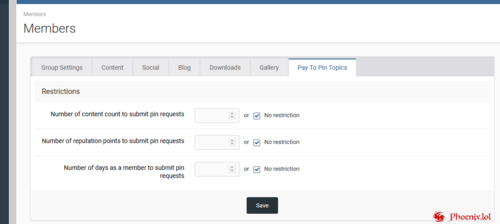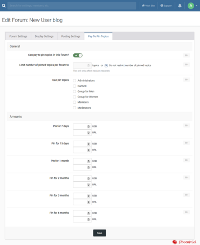 - Выбор групп, которым разрешено платить за закрепление тем.