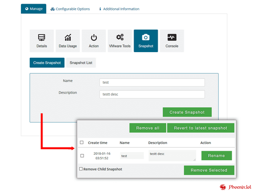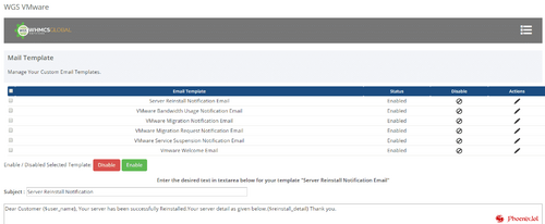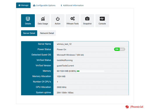 WGS VMware vSphere is a fully automated module that will reduce 90% of your IT person cost. With this module, once the user orders the service the admin does not need to create VM manually or install the OS. Moreover, the network adapter also manages itself and once the server is provisioned, the module will send all the details to end user. We are providing a rich client area UI feature where user can manage all the controls like start, stop, reinstall the server as well as manage the server snapshot.