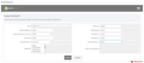 - Ability to assign the existing VM created for WHMCS users.