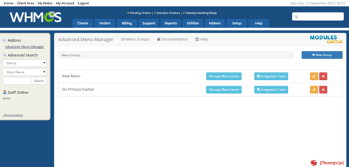 - Install WHMCS default menu links with one click