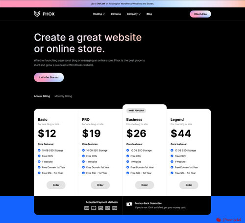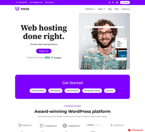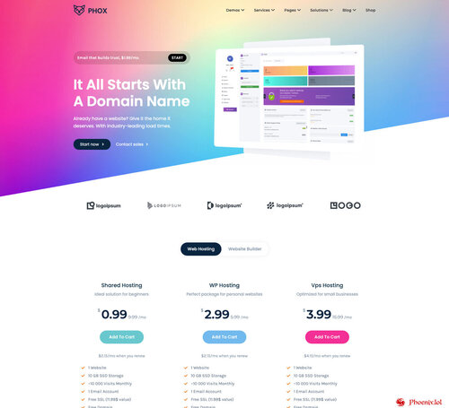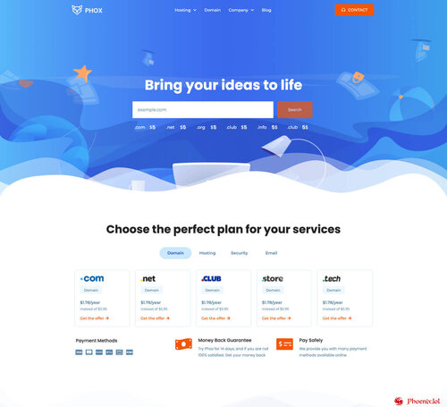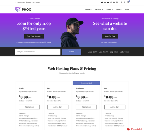 Phox is a perfect solution for Hosting Companies. Phox gives you the ability to create a unique-looking website with an easy-to-use drag and drop page builder. fully responsive, retina-ready, and SEO-optimised. On top of that, Phox comes with Advanced Domain Search, You can also choose from +20 website templates as a quick start.