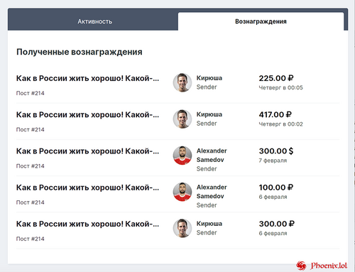 Каждый раз, когда пост получает вознаграждение, его автор уведомляется об этом.
