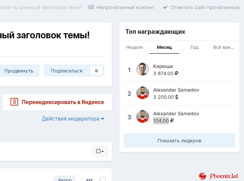 Под кнопками управления постом будет отображаться список с пользователями, поблагодарившими за пост, их сумма и причина благодарности.